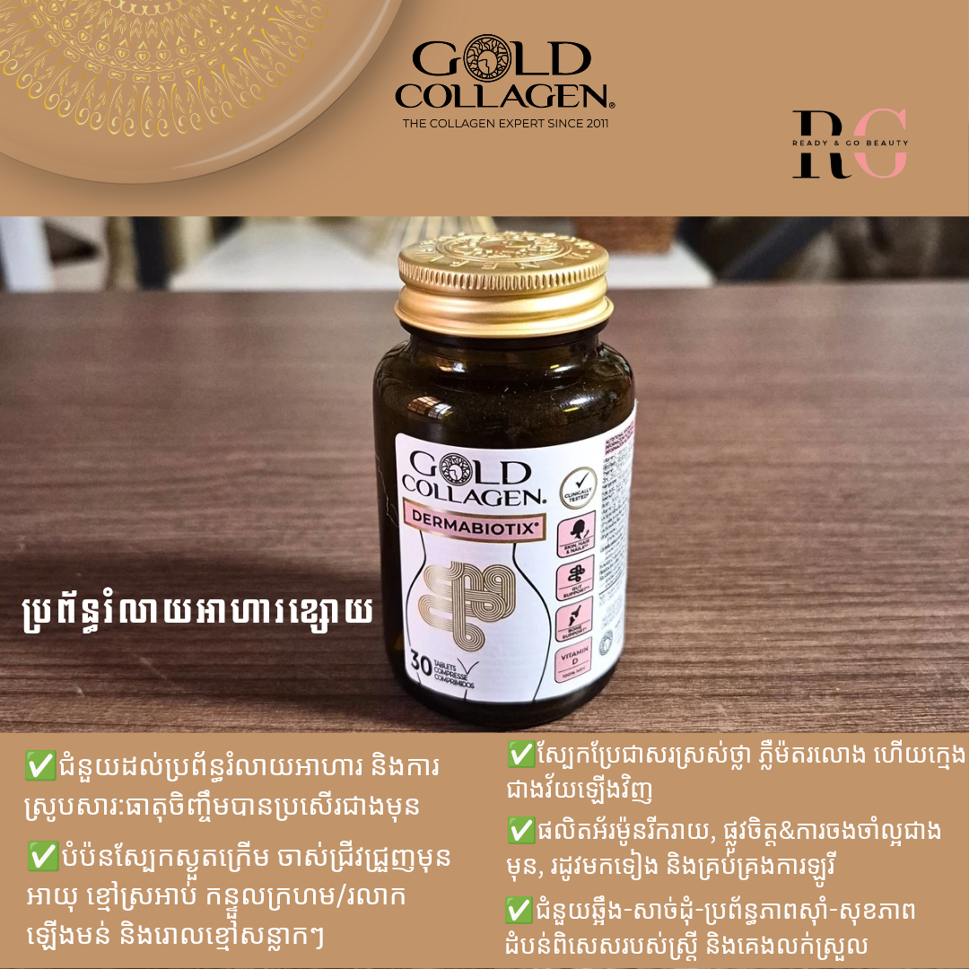 ♻️សម្រស់ស្បែក និងរាងកាយក្រៀមស្វិត ប្រើផលិតផលអ្វីក៏មិនបានផល សុំប្រើ GOLD COLLAGEN® DERMABIOTIX ជាភេទប្រូប៊ៃអ៊ូតិច ដែល 3ស្រទាប់ពិសេសៗ ៖