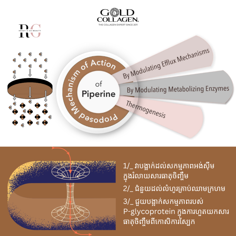 ♻️លើសពីនេះ GOLD COLLAGEN®️ មានផ្ទុកនូវសារធាតុ BioPerine សំរាប់ជំនួយដល់រាងកាយស្រូបយកសារធាតុ:ចិញ្ចឹមបីដង ច្រើនជាងខូលឡាជិនទូទៅ!